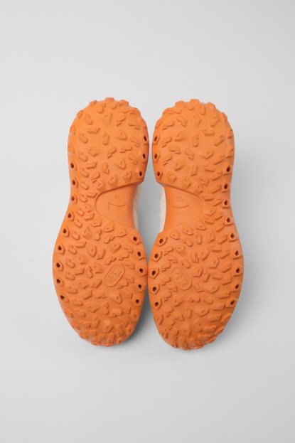 Bele In Oranžne Moške Superge Iz Recikliranega PET In Usnja S Tehnologijo GORE-TEX Surround® In Zunanjimi Podplati XL EXTRALIGHT®. CRCLR So Naše Superge Za Vse Terene, Ki Združujejo Naše Tehnične Izkušnje Z Urbano Estetiko, Navdihnjene S Kolesarskimi Pnevmatikami.