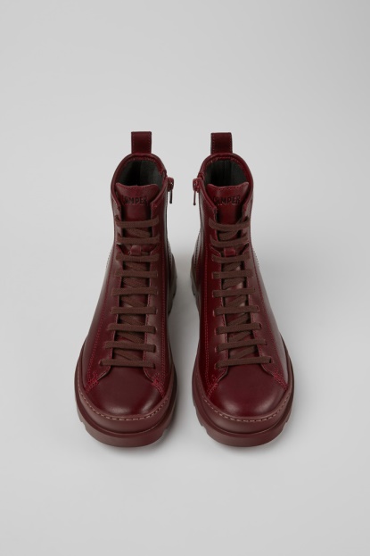 Ženski Gležnarji Iz Borda Rdečega Usnja Z Vložki Iz PU In XL EXTRALIGHT Podplati. Originalni Camper Iz Leta 1986 Z Ikoničnim Urbanim Dizajnom. Brutus Je Vzdržljiv Zahvaljujoč 360' šivu In Ima Lahko Tehnologijo.