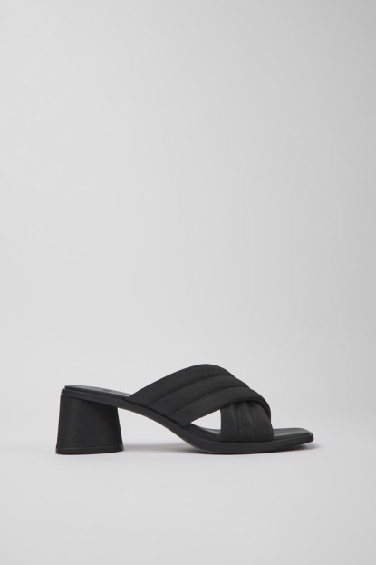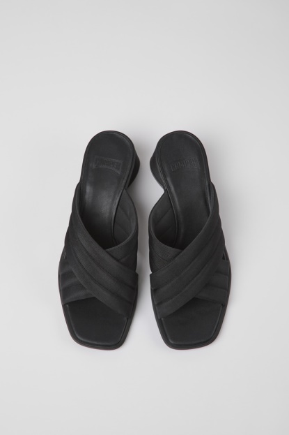 Črni Tekstilni ženski Sandali Z Neodstranljivimi Vložki OrthoLite® Recycled™ In Gumijastimi Podplati. S čistimi Linijami In Sodobno Silhueto Je Kiara Vsestranski Dizajn Za Dan In Noč.