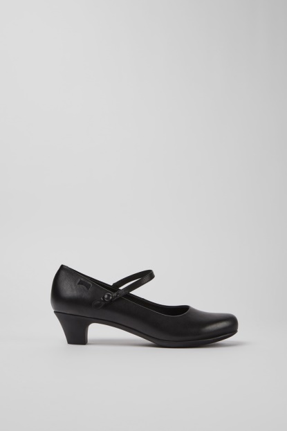 Ženski črni Polnozrnati Usnjeni Mary Jane Z Gumijastim Podplatom. Naši ženski čevlji Helena So Vsestranskega Stila S Klasičnim Videm In Skromno Peto.