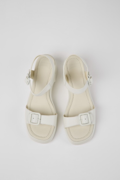 Beli Usnjeni ženski Sandali Z Neodstranljivimi Vložki OrthoLite® Recycled™ In Podplati Iz PU. Z Drznim, Sodobnim Dizajnom, Ki Sta Ga Navdihnila Futurizem In Brutalizem, Naši Sandali Kaah Dokončajo Igriv Pridih Avantgardnemu Slogu.