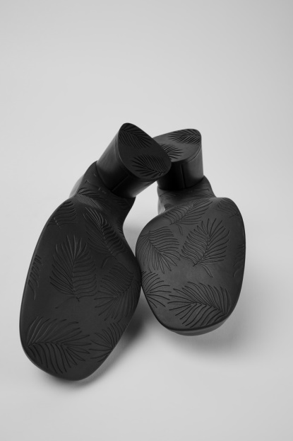 Črni Usnjeni ženski čevlji Z Vložki OrthoLite® Recycled™ In Gumijastimi Podplati, Podloženimi Z Usnjem. Našo Kiaro Označujejo Drzne Silhuete In Barve.