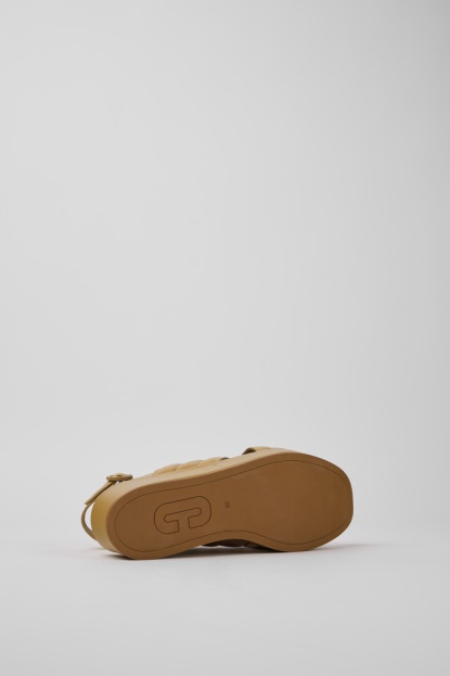Rjavi Usnjeni ženski Sandali S PU Podplatom. Naši ženski Sandali Z Ravno Obliko Misia So Oblazinjene Platforme, Ki Nudijo Stabilno Višino In Prefinjeno Silhueto, Ovito V Mehko In Elegantno Enobarvno Usnje.