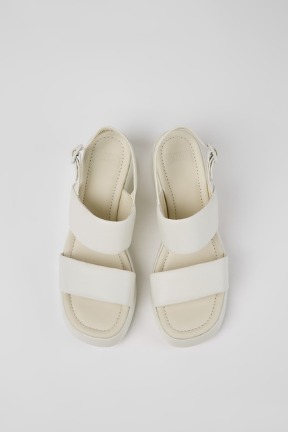 Beli Usnjeni ženski Sandali Z Neodstranljivimi Vložki OrthoLite® Recycled™ In Podplati Iz PU. Z Drznim, Sodobnim Dizajnom, Ki Sta Ga Navdihnila Futurizem In Brutalizem, Naši Sandali Kaah Dokončajo Igriv Pridih Avantgardnemu Slogu.