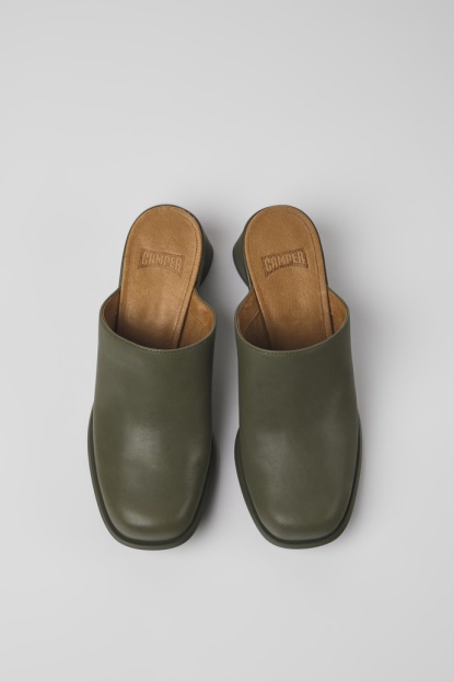 Zelene Usnjene ženske Mule Hlače Z Neodstranljivimi Vložki OrthoLite® Recycled™ In Gumijastimi Podplati. S čistimi Linijami In Sodobno Silhueto Je Kiara Vsestranski Dizajn Za Dan In Noč.