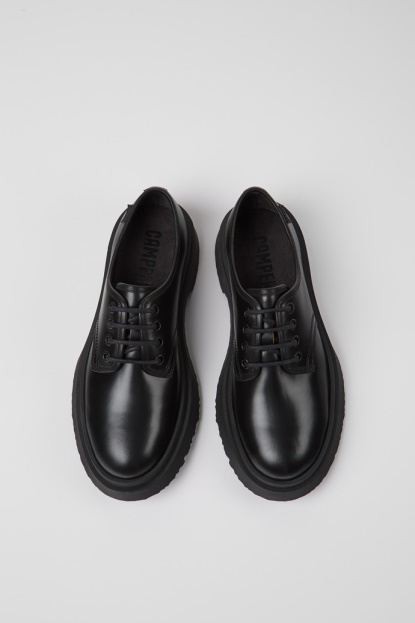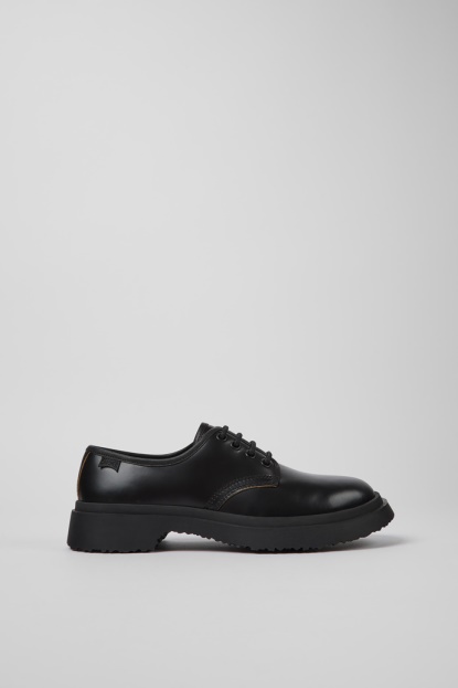 Črni Usnjeni ženski čevlji Z Vezalkami In Gumijastimi Podplati. Waldenov Dizajn Temelji Na Cenitvi Narave In Preprostega življenja, Ustvarjen Z Materiali Vrhunske Kakovosti, Ki Nudijo Dodatno Udobje.