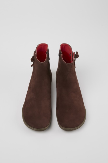 Rjavi ženski Gležnjarji Iz Nubuka S TPU Podplati (20 % Recikliran). Peu, Ikona Kamperja, Ki Se Razvija Z Vsakim Letnim Časom, Kljub Funkcionalno Preprostost, Ki Jo Navdihuje Bosa Hoja. Je 360-stopinjski šivan In Izdelan S Konstrukcijsko Tehniko Strobel, Kar Zagotavlja Neprimerljivo Upogibnost In Vzdržljivost V Vseh Pogojih.