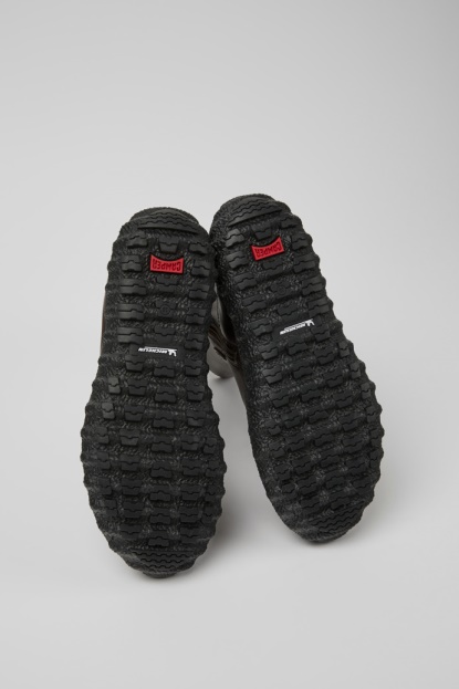 Temno Rjavi Usnjeni ženski škornji Z Vložki OrthoLite® Recycled™ In Gumijastimi Podplati Michelin (27 % Naravnega). Ground Na Novo Predstavlja Urbani Ulični Slog Z Dodajanjem Sodobnega Pridiha Industrijske Estetike Camper.