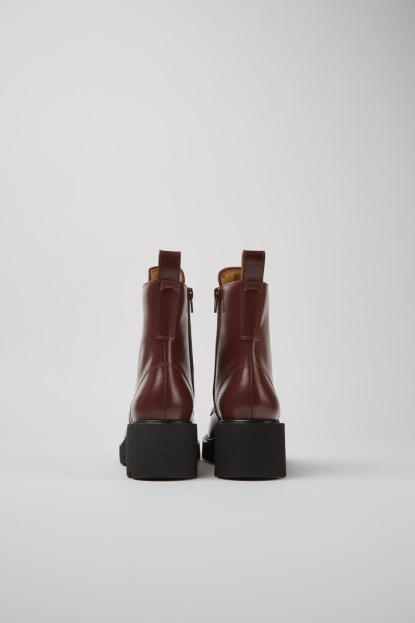 Usnjeni ženski škornji Na Vezalke V Bordo Barvi Z Vložki OrthoLite® Recycled™ In Podplati Iz EVA. Milah So Debeli Zimski škornji Značilnega Urbanega Videza.