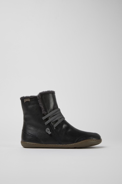 Temno Siv ženski Srednji škorenj. Polnozrnato Usnje Z Elastičnimi Vezalkami In TPU Podplatom. Naši ženski čevlji Peu So Oblikovani Po Obliki Stopala Z Edinstveno Silhueto, Ki Ohranja Vse Prednosti Bose Hoje.