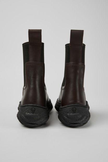 Temno Rjavi Usnjeni ženski Gležnarji Z Vložki OrthoLite® Recycled™ In Gumijastimi Podplati Michelin (27 % Naravnega). Ground Na Novo Predstavlja Urbani Ulični Slog Z Dodajanjem Sodobnega Pridiha Industrijske Estetike Camper.