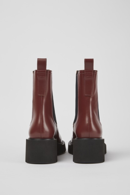 Usnjeni ženski škornji V Bordo Barvi Z EVA Podplatom. Milah So Debeli Zimski škornji Značilnega Urbanega Videza.
