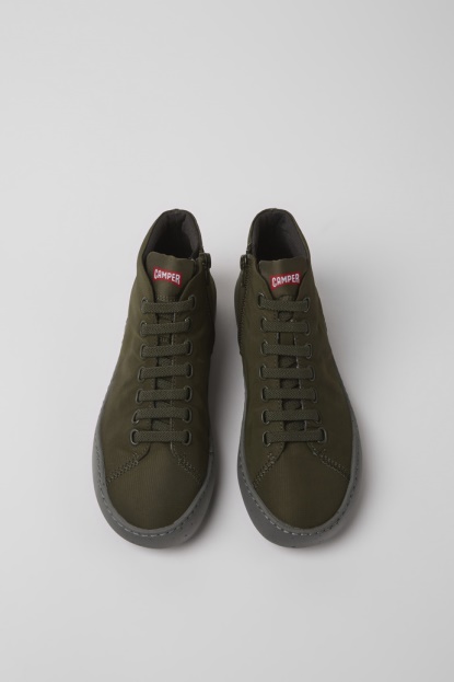 Zelene ženske Superge Iz Recikliranega PET Z Elastičnimi Vezalkami In Podplatom Iz EVA (20 % Recikliranega). Peu Touring Je športnejša Različica Našega Ikoničnega Peuja, Izboljšana S Tehničnimi Nadgradnjami In Prepoznavno Krivuljo Na Zunanjem Podplatu.