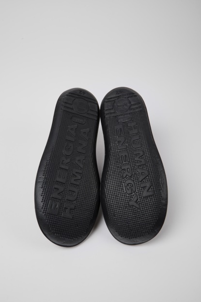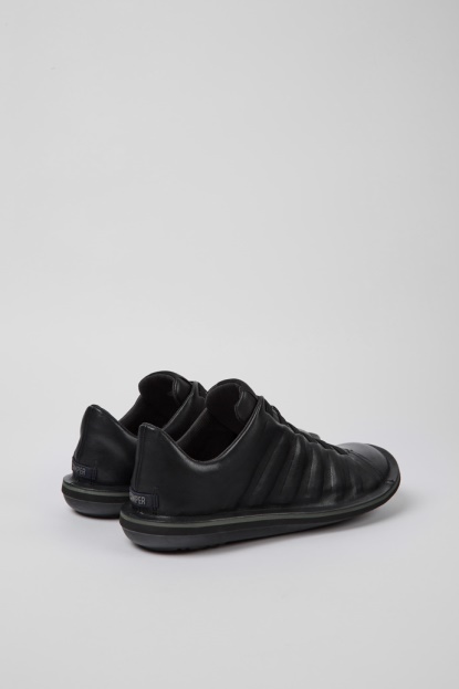 Črn Lahek Moški čevelj. Polnozrnato Usnje In Elastične Vezalke. Ikona Kamperja, Ki Se Razvija Z Vsako Sezono, Naši Moški čevlji Beetle So Lahki In Prilagodljivi, Z Zapečateno Konstrukcijo, Ki Združuje Anatomsko Obliko Z Izvirnim Dizajnom.