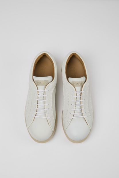 Bele Moške Superge Iz Nebarvanega Usnja Z Gumijastimi Podplati. Pelotas Ariel Je Naš Najbolj Ikoničen Slog Camper. Z Značilnim športno Navdahnjenim Podplatom, Sestavljenim Iz 87 Kroglic, Je Vsak Par Ročno Izdelan Iz Evropskih Usnj, Ki So 360o Prišita Na Gumijasti Podplat.