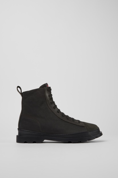 Temno Sivi Moški Gležnjarji Iz Tekstila In Nubuka Z Recikliranimi Membranami Primaloft In Podplati XL EXTRALIGHT Sustainable + (51 % Recikliranih). Originalni Camper Iz Leta 1986 Z Ikoničnim Urbanim Dizajnom. Brutus Je Vzdržljiv Zahvaljujoč 360' šivu In Ima Lahko Tehnologijo.