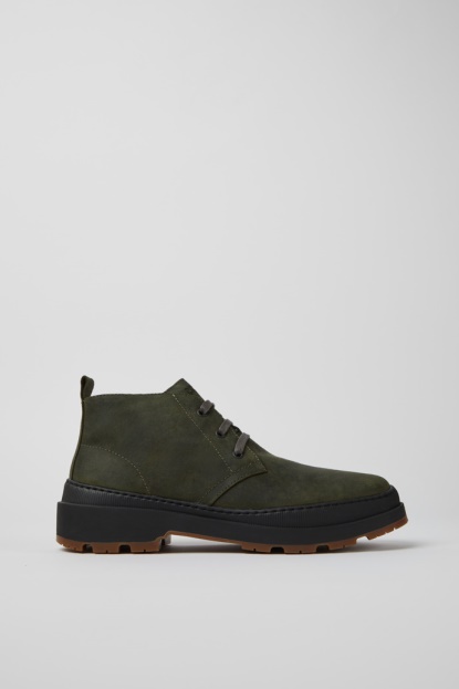 Temno Zeleni Moški Gležnjarji Iz Nubuka Z Vmesnimi Podplati Iz EVA, Vložki OrthoLite® Recycled™ In Zunanjimi Podplati Iz Gume Michelin (27 % Naravnega). Naš Brutus Trek Je Sodoben Visokozmogljiv Pogled Na Klasične Sloge.