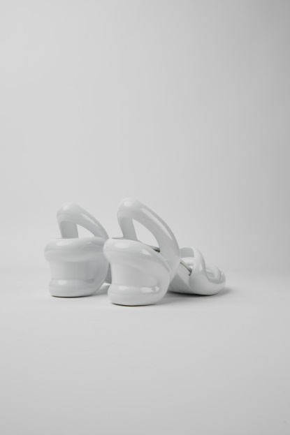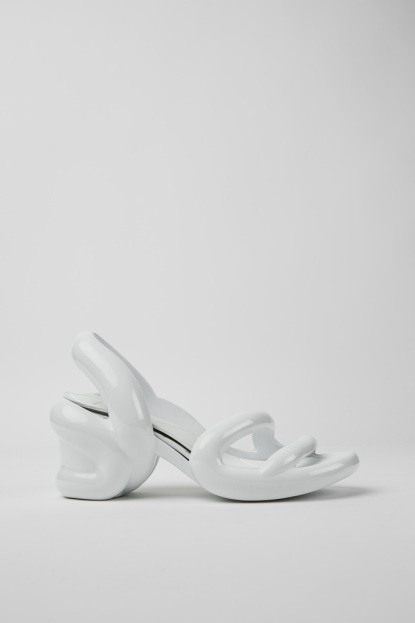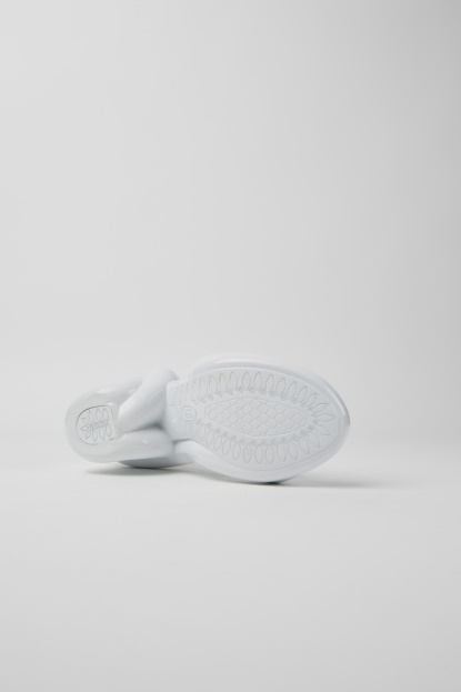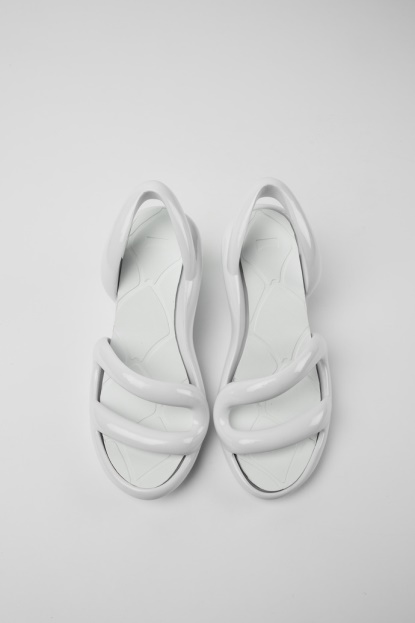 Beli Uniseks Sandali S Podplatom XL EXTRALIGHT® Organix™ (30 % Sladkornega Trsa Iz Biološkega Izvora). Kobarah Je Bil Zasnovan Tako, Da Se Ovije Okoli Stopala, Navdihnjen Z Oblinami Kače. Izdelan Iz Materialov, Ki Jih Je Morda V Celoti Reciklirati, Njegova Zaobljena Oblika In široka Peta Končata Edinstven Sandal S Peto Ležerne, A Sodobne Estetike.
