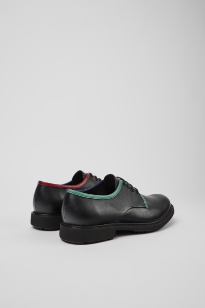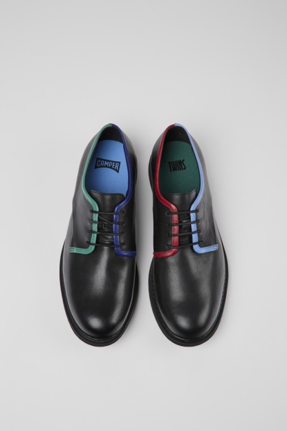 Črni Moški Usnjeni čevlji Na Vezalke Z Barvitimi Detajli In EVA Podplati. Naš Koncept TWINS, Rojen Leta 1988, Izziva Idejo, Da Morajo Biti čevlji Enaki, In Predstavlja Neusklajene Sloge, Ki So Resnično Edinstveni.