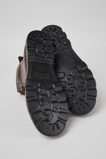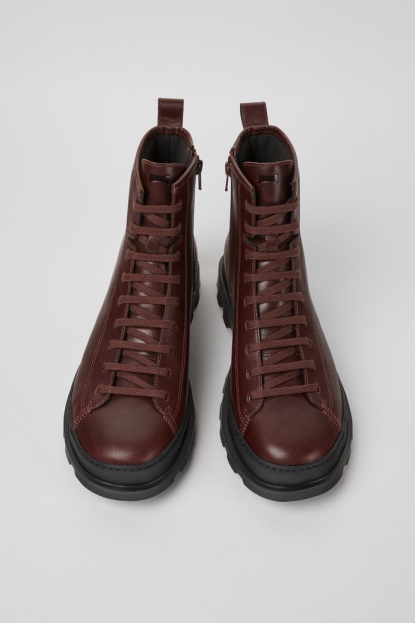 Bordo Rdeči Usnjeni Moški škornji Z Vezalkami In EVA Podplati. Originalni Camper Od Leta 1986 Z Ikoničnim Urbanim Dizajnom. Brutus Je Vzdržljiv Zahvaljujoč 360' šivu In Ima Lahko Tehnologijo.