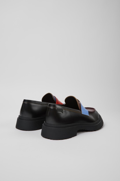 Črni Usnjeni Moški Mokasini S Pisanimi Detajli In Gumijastimi Podplati. Naš Koncept TWINS, Rojen Leta 1988, Izziva Idejo, Da Morajo Biti čevlji Enaki, In Predstavlja Neusklajene Sloge, Ki So Resnično Edinstveni.