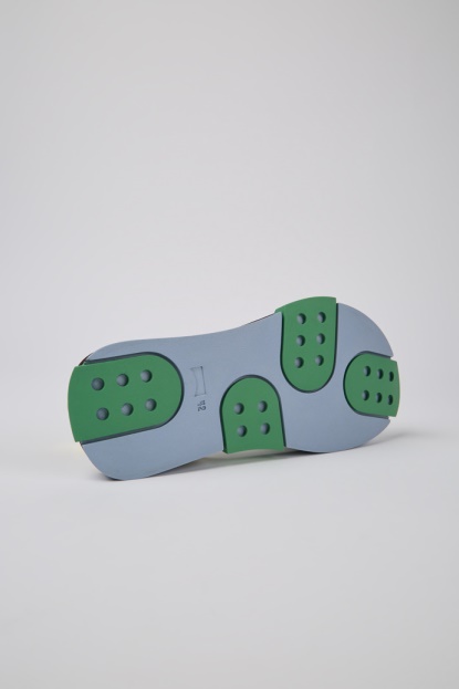 Večbarvni Reciklirani PET Trakovi In Usnjeni Moški Sandali Z EVA In Gumijastimi Podplati (20 % Recikliranih) In Sistemom Zapiranja Na Kavelj In Zanko. Leta 1988 Rojen Naš Klasični Koncept TWINS – Nasproten, A Vendar Komplementaren – Izziva Idejo, Da Morajo Biti čevlji Enaki, In živi V Teh Neusklajenih Moških čevljih, Da Tvorijo Resnično Edinstven Par.