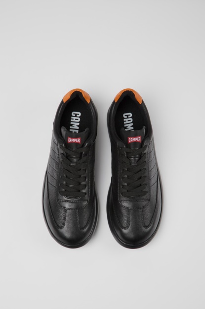 Črne In Oranžne Usnjene Moške Superge Z EVA Podplatom. S Posodobljeno Obliko In Mehkimi Podplati Naše Izboljšane Pelotas XL Predstavljajo Nov Pristop K Urbani Obutvi.