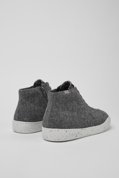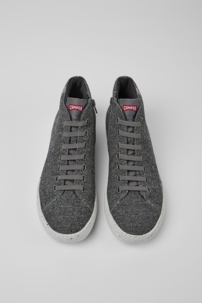 Sivo-črne Moške Superge Iz Reciklirane Volne Z Vodoodbojnimi Obdelavami, Elastičnimi Vezalkami In EVA Zunanjimi Podplati (20 % Recikliranih). Peu Touring Je športnejša Različica Našega Ikoničnega Peuja, Izboljšana S Tehničnimi Nadgradnjami In Prepoznavno Krivuljo Na Zunanjem Podplatu.
