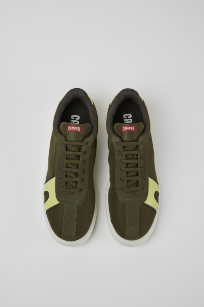 Zelene In Rumene Moške Superge Iz Recikliranega Poliestra In Usnja Z Zunanjimi Podplati XL EXTRALIGHT® Organix™ (30 % Sladkornega Trsa Na Biološki Osnovi). Runner K21 Je Najnovejši Dodatek K Družini Runner Z Retro Navdihnjenim Pristopom In Povečanim Volumnom.