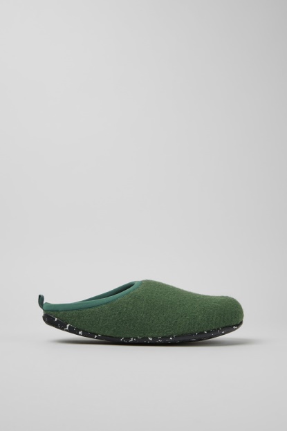Zeleni Volneni Moški Copati Z EVA Vložki In Gumijastimi Podplati. Naše Ikonične Copate Wabi Navdihuje Japonski Minimalizem. Ti Copati, Narejeni Z Idejo, Da So Komponente In Proizvodni Procesi Minimalni, Več Kot Dvajset Let Po Prvem Nastopu Z Mehkim Oblažinjem In Udobnim Občutkom še Naprej Na Novo Definirajo Udobje V Zaprtih Prostorih.