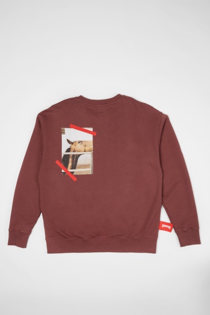 Pulover Z Dolgimi Rokavi In Okroglim Izrezom Iz 100 % Organskega Bombaža V Bordo Barvi S Konjskim Potiskom Zadaj Levo In Oznako Na Robu Z Logotipom Camper Spodaj Desno. Ta Ležerna Prevelika Jopica Ima Na Zadnji Strani Plakatu Podobno Podobo Konja Kasača Z Mallorce Iz Camperjeve Kampanje 'The Walking Society'. Kolekcija, Ki Jo Navdihujejo Korenine Znamke, Sredozemski Otok Mallorca, Združuje Konjeniške Motive Z Visokokakovostnim Organskim Bombažem In Sodobnimi Oblikami Za Vsakodnevno Nošenje. Velikost In PrileganjeUnisex Zasnovan Za Ohlapen In Prevelik Kroj. Moški Model Meri 187 Cm In Nosi Velikost L. Ženski Model Meri 175 Cm In Nosi Velikost M