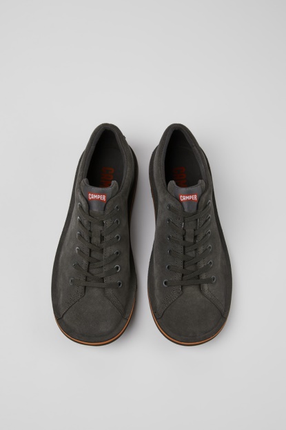 Sivi Moški čevlji Iz Nubuka Z Elastičnimi Vezalkami In EVA Podplati. Ikona Kamperja, Ki Se Razvija Z Vsako Sezono, Naši čevlji Beetle So Lahki In Prilagodljivi, Z Zapečateno Konstrukcijo, Ki Združuje Anatomsko Obliko Z Izvirnim Dizajnom.