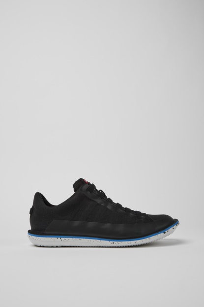 Črn čevelj Za Moške. Zgornji Del Iz 80 % Recikliranega PET Blaga In Elastične Vezalke. Beli In Modri Podplat Iz 51 % Recikliranega EVA. Malo Boljši, Nikoli Popoln. Ikona Kamperja, Ki Se Razvija Z Vsako Sezono, Naši Moški čevlji Beetle So Lahki In Prilagodljivi, Z Zapečateno Konstrukcijo, Ki Združuje Anatomsko Obliko Z Izvirnim Dizajnom.