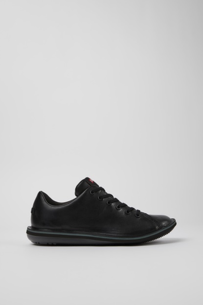 Črni Usnjeni Moški čevlji Z Elastičnimi Vezalkami In EVA Podplati. Ikona Kamperja, Ki Se Razvija Z Vsako Sezono, Naši čevlji Beetle So Lahki In Prilagodljivi, Z Zapečateno Konstrukcijo, Ki Združuje Anatomsko Obliko Z Izvirnim Dizajnom.