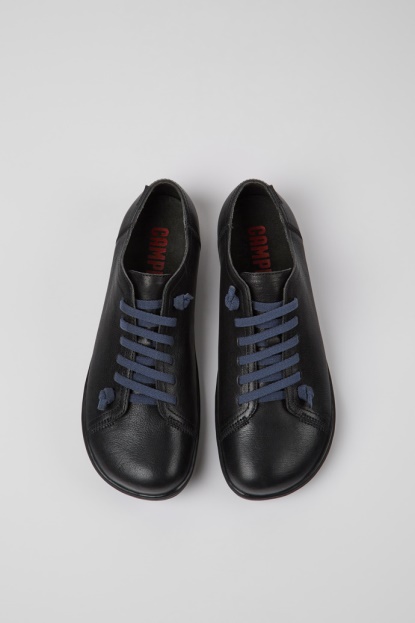Črni Moški čevlji Za Prosti čas. Polnozrnato Usnje Brez Kroma In Elastične Vezalke Za čevlje. Naši Moški čevlji Peu So Oblikovani Po Obliki Stopala Z Edinstveno Silhueto, Ki Ohranja Vse Prednosti Bose Hoje.