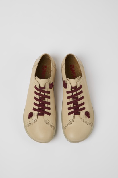 Bež Usnjeni ženski čevlji Z Odstranljivimi PU Podplati In TPU Podplati (20 % Recikliran). Ikona Kamperja, Ki Se Razvija Z Vsako Sezono. Peu Je Funkcionalna Preprostost, Ki Jo Navdihuje Bosa Hoja. Je 360-stopinjski šivan In Izdelan S Konstrukcijsko Tehniko Strobel, Ki Zagotavlja Neprimerljivo Upogibnost In Vzdržljivost V Vseh Pogojih.