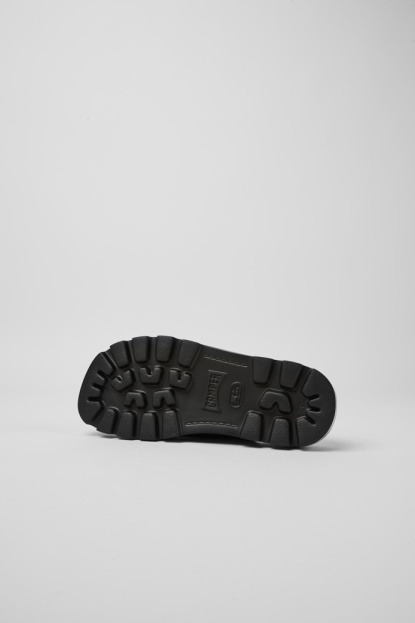 Črni Usnjeni ženski Sandali Z Zunanjimi Podplati Iz 100 % EVA XL EXTRALIGHT®. Ta Minimalističen Sandal, Nov Dodatek K Camperjevi Ikonični Družini Brutus, Vključuje Naravne Materiale In Izjemno Lahek Podplat.