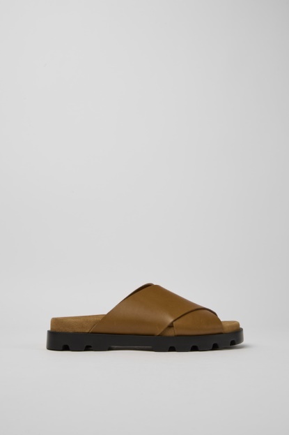 Rjavi Usnjeni ženski Sandali Z Zunanjimi Podplati XL EXTRALIGHT® Iz 100 % EVA. Ta Minimalističen Sandal, Ki Je Nov Dodatek K Camperjevi Ikonični Družini Brutus, Vključuje Naravne Materiale In Izjemno Lahek Podplat.
