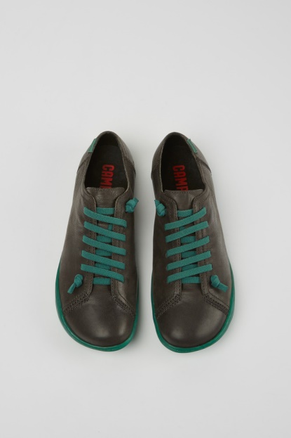 Sivi Usnjeni ženski čevlji S TPU Podplati (20 % Recikliran). Peu, Ikona Kamperja, Ki Se Razvija Z Vsakim Letnim Časom, Kljub Funkcionalno Preprostost, Ki Jo Navdihuje Bosa Hoja. Je 360-stopinjski šivan In Izdelan S Konstrukcijsko Tehniko Strobel, Ki Zagotavlja Neprimerljivo Upogibnost In Vzdržljivost V Vseh Pogojih.