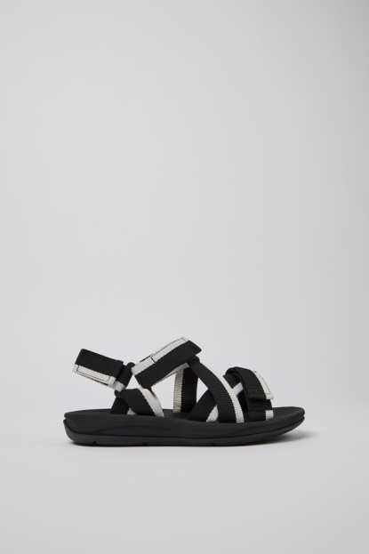 Črno-beli ženski Sandali S 100% Recikliranimi PET Paščki, EVA Podplati In Sistemom Zapiranja Na Zanko. Naš Sandal Match Je Dokaz Udobja In Preprostosti Dizajna S Pasovi, Ki Se Enostavno Prilegajo Iz 100-odstotno Recikliranega PET-a, In Lahkim Podplatom.