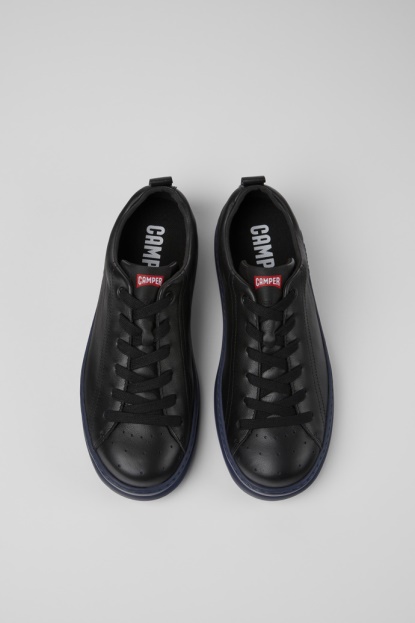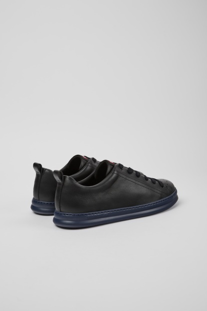 Črne Moške Superge. Polnozrnato Usnje In Moder Podplat. Naše Moške Superge Runner Nudijo Sproščen Videz Z Mehkim Usnjem In Športno Silhueto V Prenovljenem Slogu, Vzetem Iz Naših Arhivov.