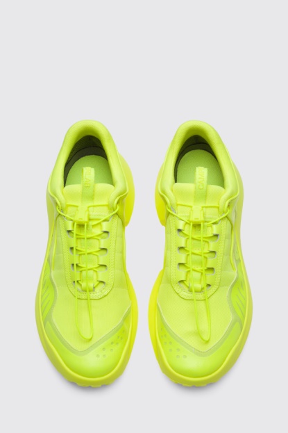 Moške Neon Rumene široke Superge. Polnozrnato Usnje In Tekstil. Te Superge, Ki Jih Navdihujejo Kolesarske Pnevmatike, So Naš Najbolj Napreden In Futurističen Slog Doslej. Z Uporabo Edinstvene Kombinacije Materialov Ima Večplastni Slog Ikoničen Podplat Z Dodatnim Oblazinjenjem In Vložke OrthoLite®. S Tehnologijo Gore-Tex Surround® So Te Superge Dodatno Zračne.