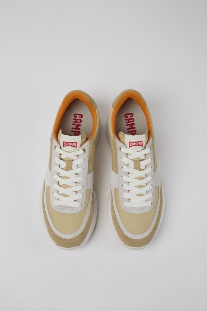 Bež In Bele Moške Superge Iz Recikliranega Poliestra In Nubuka S Podplatom Iz 70 % EVA In 30 % Gume. Naše Superge Drift Se Ponašajo Z Lahko Konstrukcijo In Športno Silhueto Po Navdihu Atletskih Copat Iz 90. Let.