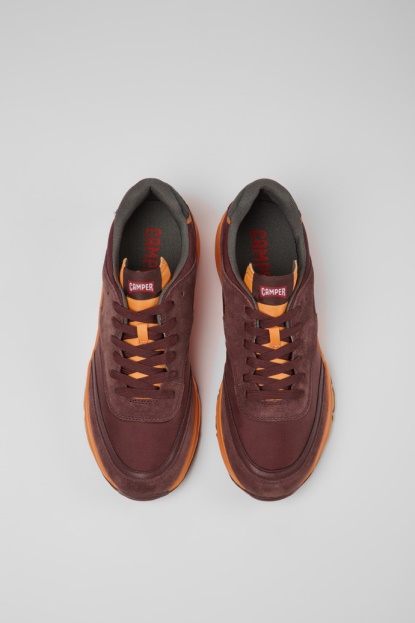 Bordo In Oranžne Moške Superge Iz Tekstila In Nubuka S PU Vložki In Podplati Iz 70 % EVA In 30 % Gume. Naše Superge Drift Se Ponašajo Z Lahko Konstrukcijo In Športno Silhueto Po Navdihu Atletskih Copat Iz 90. Let.