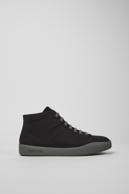 Črne Moške Superge Iz Recikliranega PET Z Elastičnimi Vezalkami In Podplatom Iz EVA (20 % Recikliranega). Peu Touring Je športnejša Različica Našega Ikoničnega Peuja, Izboljšana S Tehničnimi Nadgradnjami In Prepoznavno Krivuljo Na Zunanjem Podplatu.