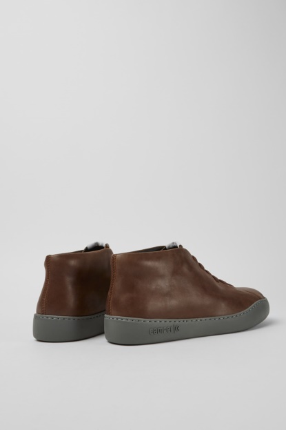 Rjave Usnjene Moške Superge Z EVA Podplatom, Reciklirano OrthoLite® Podplatom In Elastičnimi Vezalkami. Peu Touring Je športnejša Različica Našega Ikoničnega Peuja, Izboljšana S Tehničnimi Nadgradnjami In Prepoznavno Krivuljo Na Zunanjem Podplatu.