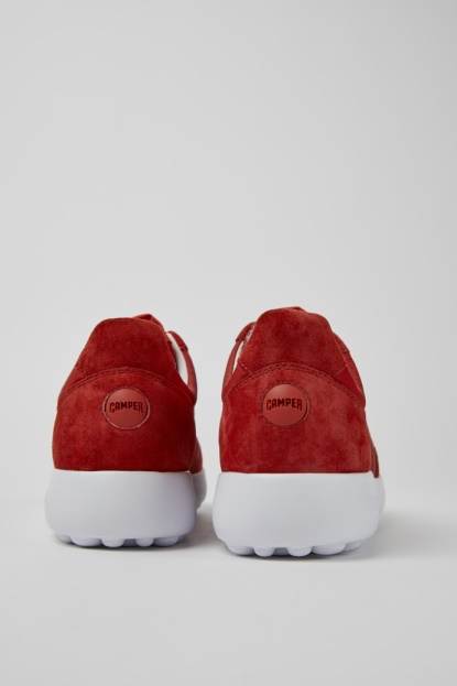 Ženske Rdeče Superge. Usnje In Tekstil Iz Nubuka Z Gumijastim Podplatom. S Posodobljeno Obliko In Mehkim Podplatom Naše Izboljšane Pelotas XL Predstavljajo Nov Pristop K Urbani Obutvi.