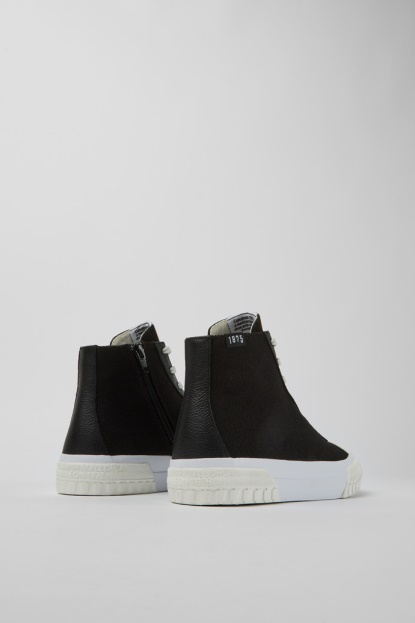 Črni ženski škornji Iz Bombažnega Platna S Certifikatom BCI S Podplati Iz 23 % Reciklirane Gume In 40 % Naravne Gume. Camaleon Je Camperjev Prvi čevelj V Zgodovini In Pooseblja Preprostost In Iznajdljivost Njegove Sredozemske Dediščine. Navdahnjena Z Rustikalnimi čevlji, Ki So Jih Nosili Pred Več Kot Stoletjem, Je Ta Linija Postala Ikona Camperja In Izraža želja Po Bolj Obzirnem Načinu Hoje. Za Vsak Prodan Par Camaleona Bomo Dali 1 % Organizaciji Save The Med, Množični Organizaciji Si Prizadeva Za Regeneracijo Sredozemskega Morja Z Izobraževanjem In Morskimi Projekti.