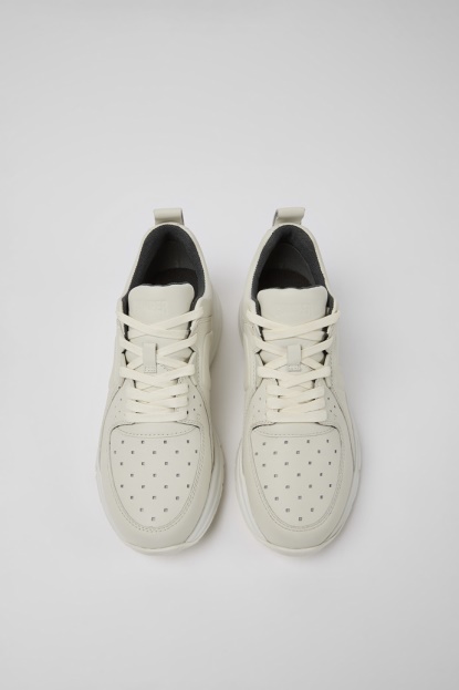 Bele ženske Superge. Usnjen Zgornji Del Z Belimi Vezalkami. Beli Podplati Iz 70 % EVA In 30 % Gume. Naše ženske Superge Drift Se Ponašajo Z Lahko Konstrukcijo In Športno Silhueto Po Navdihu Atletskih Copat Iz 90. Let.