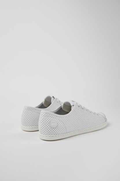Bele Usnjene ženske Superge Z Odstranljivimi Vložki OrthoLite® Recycled™ In Gumijastimi Podplati. Naše Nizke Superge Uno Imajo Elegantno Silhueto In Zgornji Del Iz Perforiranega Usnja, Ki Diha.